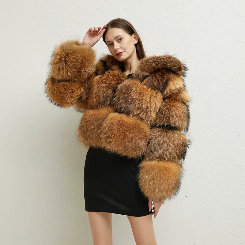 Veste de Luxe en Véritable Fourrure Raton Laveur Femme – Impératrice