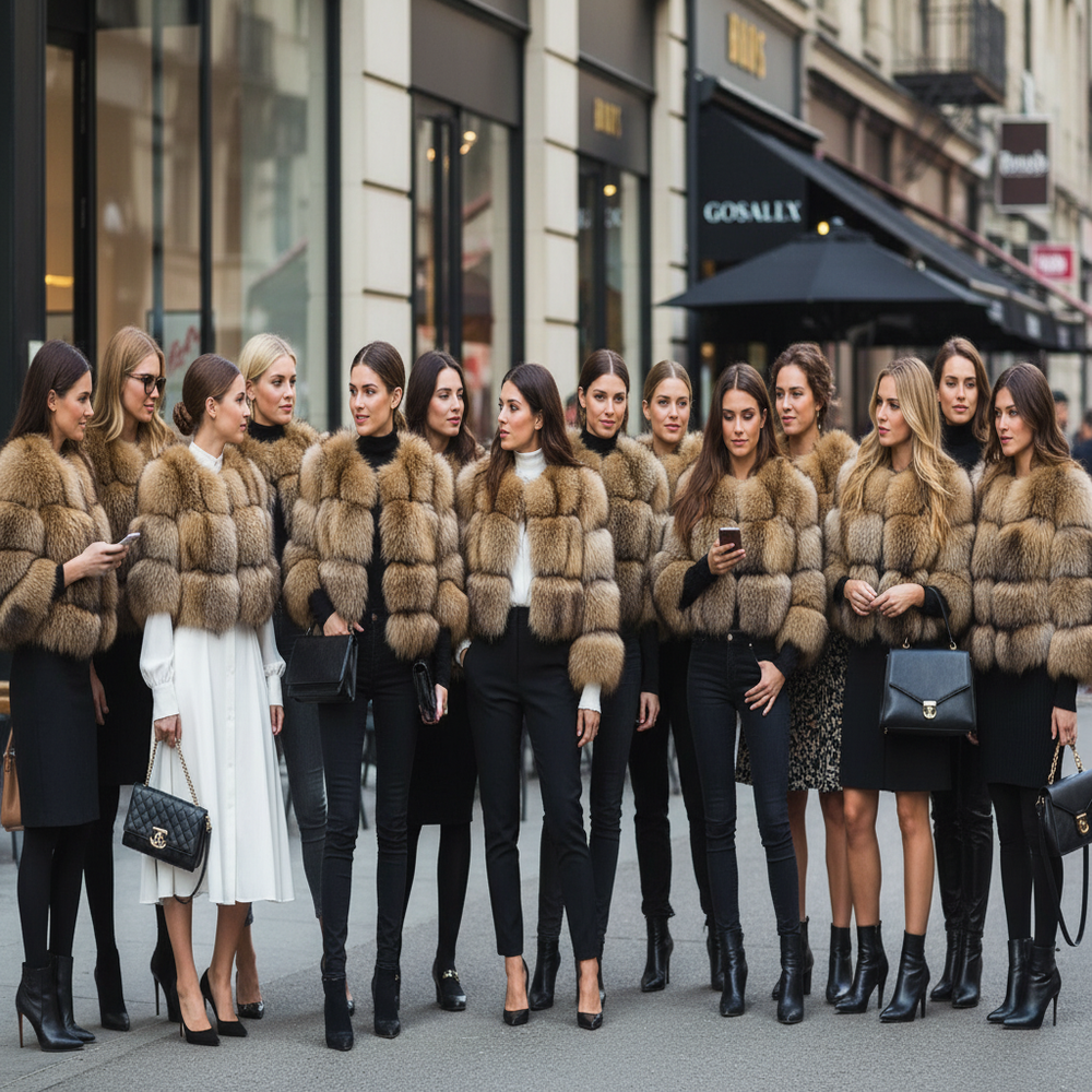 La veste Impératrice est un manteau de luxe pour femme en véritable fourrure de raton laveur, conçu pour offrir une chaleur exceptionnelle, un confort absolu et une silhouette élégante.